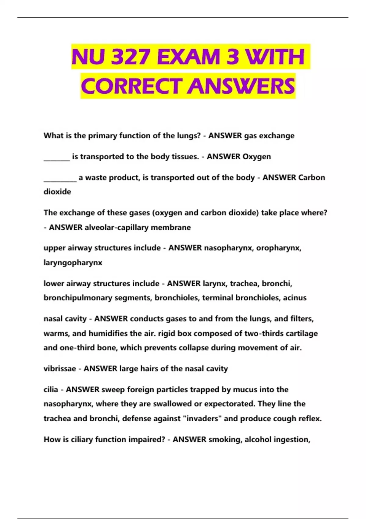 NU 327 BUNDLED EXAMS WITH SOLUTION