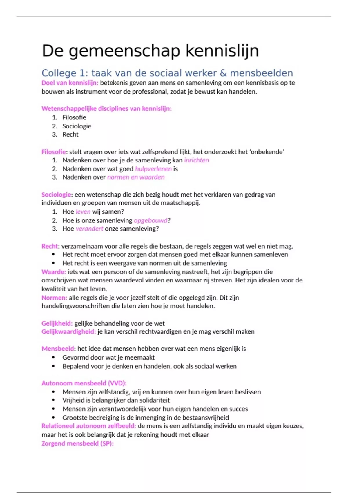 Het is een samenvatting van alle colleges. Hierin staat alle belangrijke informatie die je nodig hebt voor het tentamen. Ik heb zelf een 8,5 gehaald.