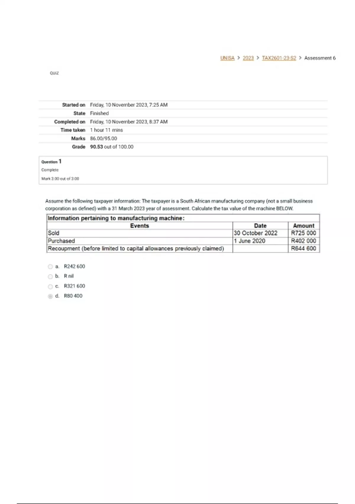 UNISA > 2023 > TAX2601-23-S2 > Assessment 6