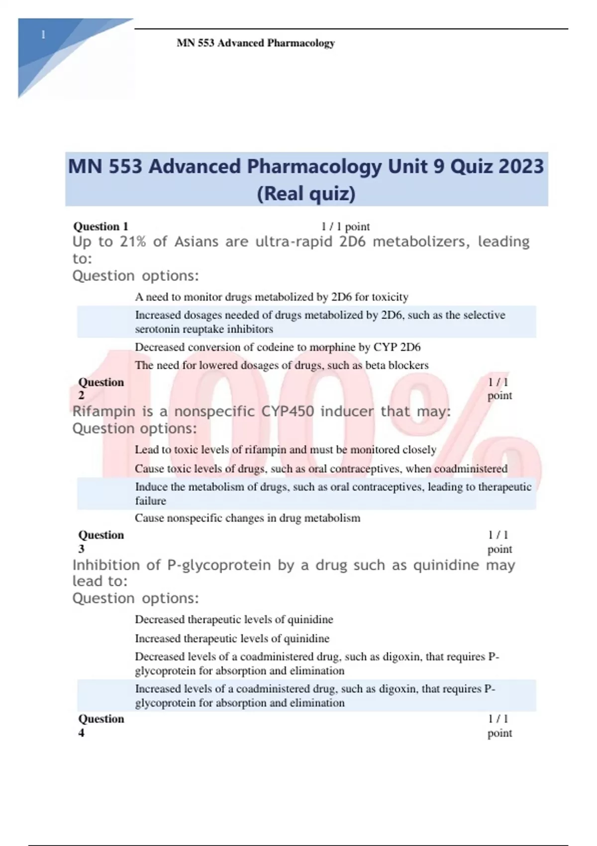 MN 553 Advanced Pharmacology Unit 9 Quiz 2023 (Real quiz) MN 553 Advanced Pharmacology Unit 9 Quiz 2023 (Real quiz) MN 553 Advanced Pharmacology Unit 9 Quiz 2023 (Real quiz)