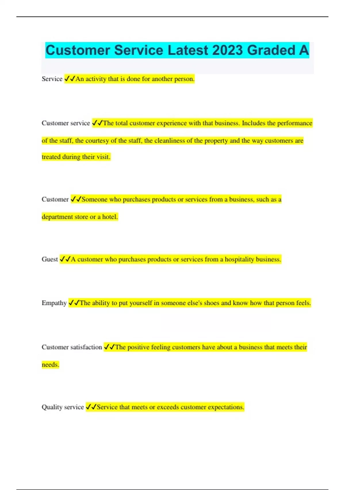 Customer Service Latest 2023 Graded A