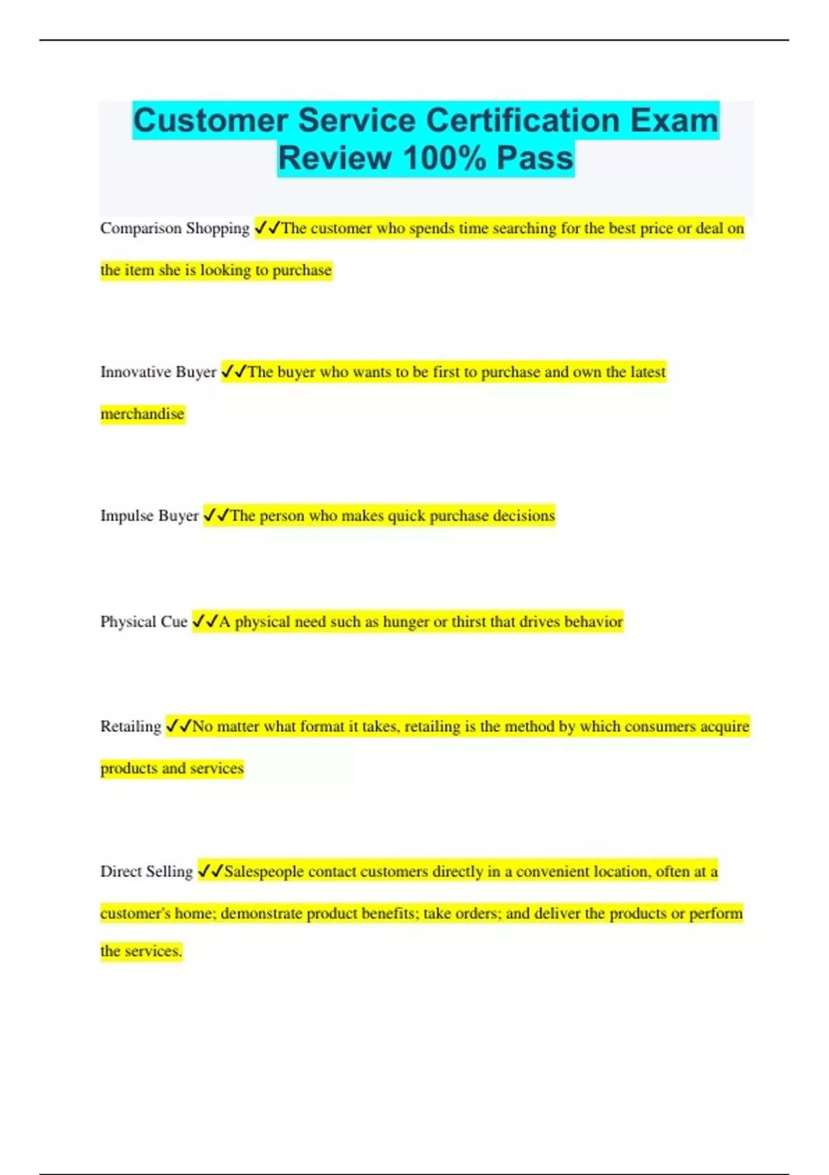 Customer Service Certification Exam Review 100% Pass