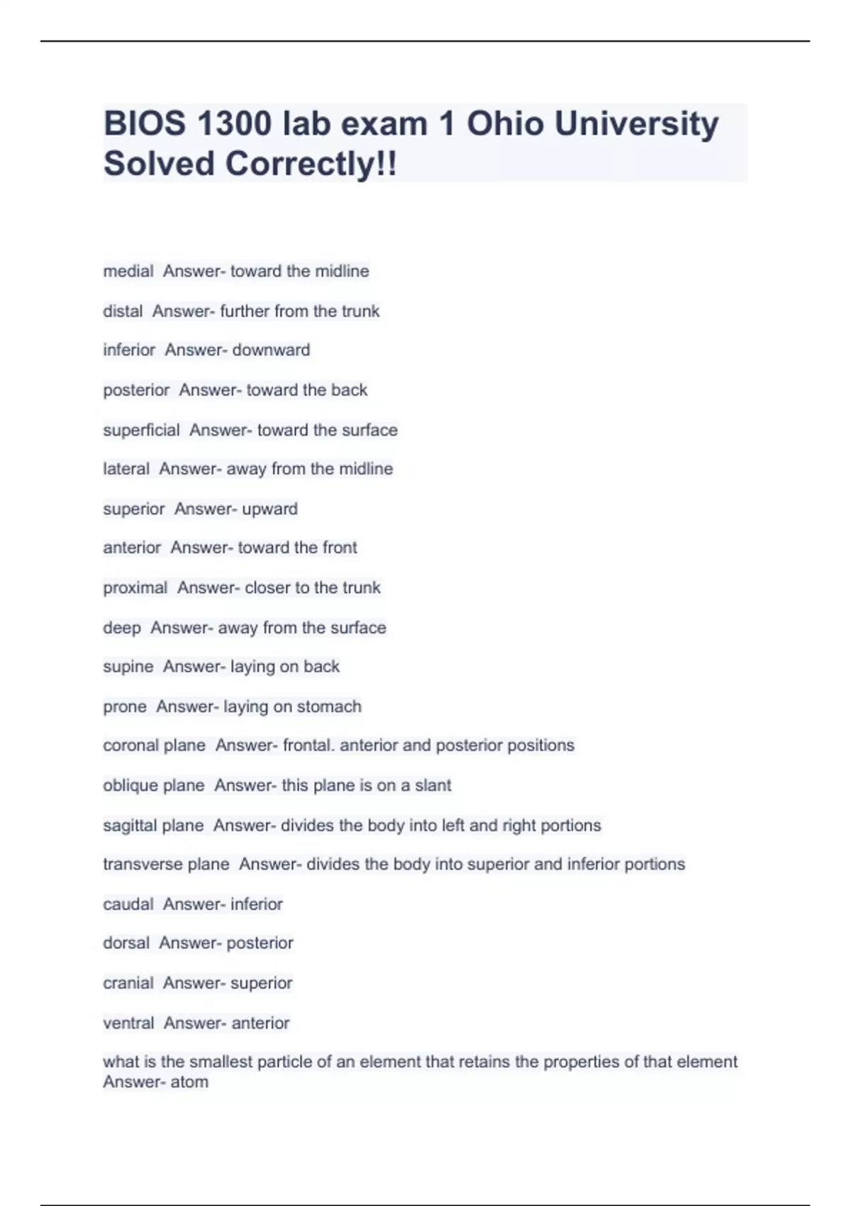 bios 1300 lab exam 1 ohio university solved correc