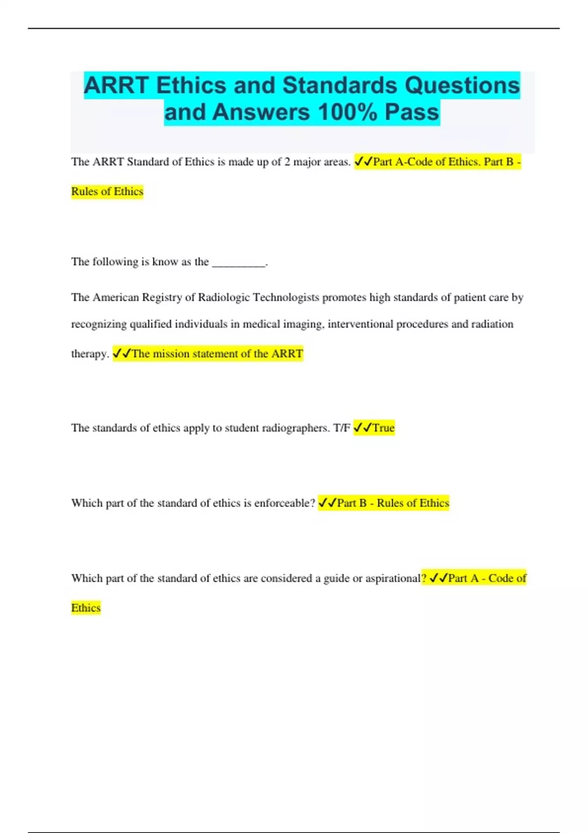 ARRT Ethics and Standards Questions and Answers 100% Pass