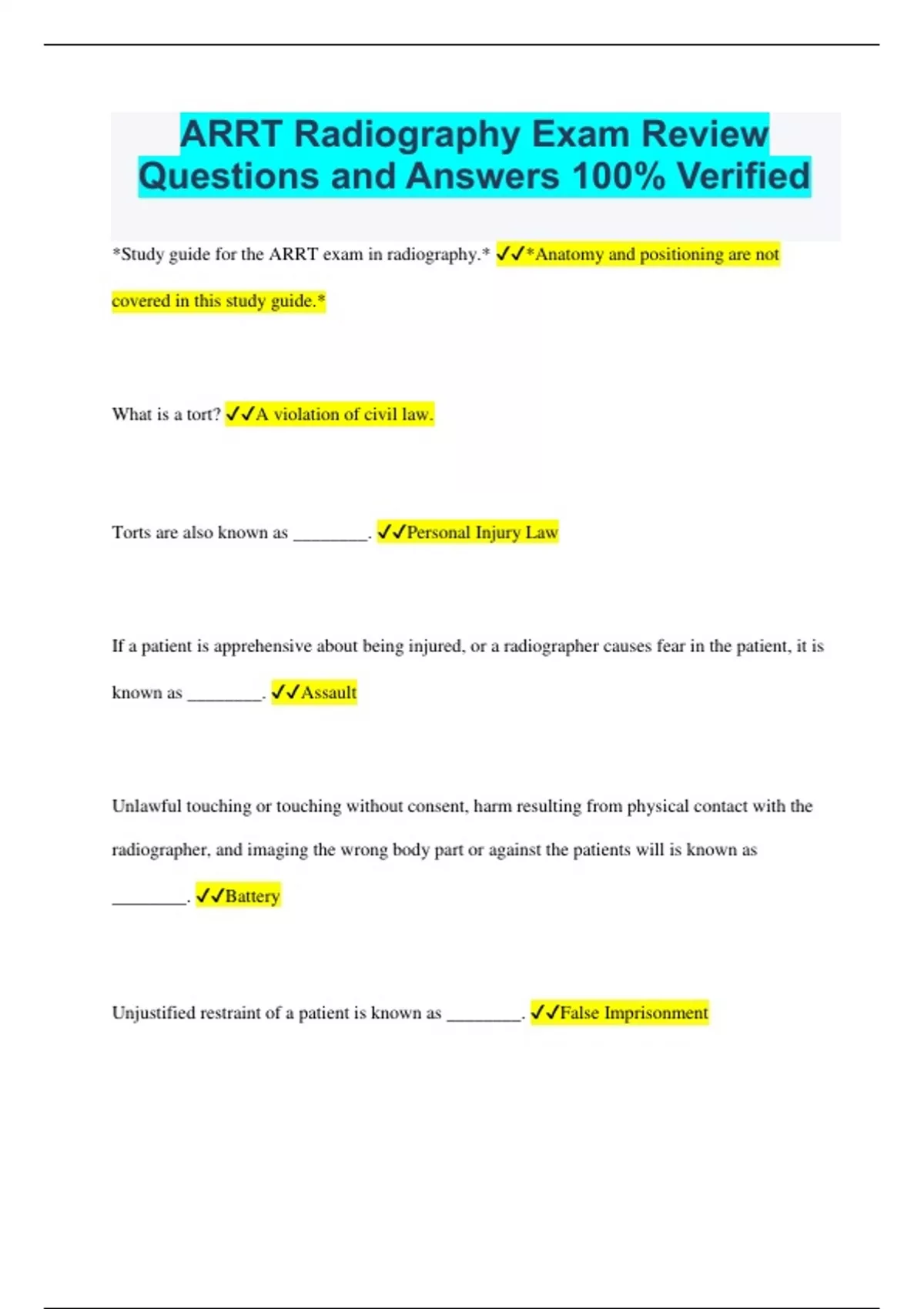 ARRT all questions and answers also examinations with answers.