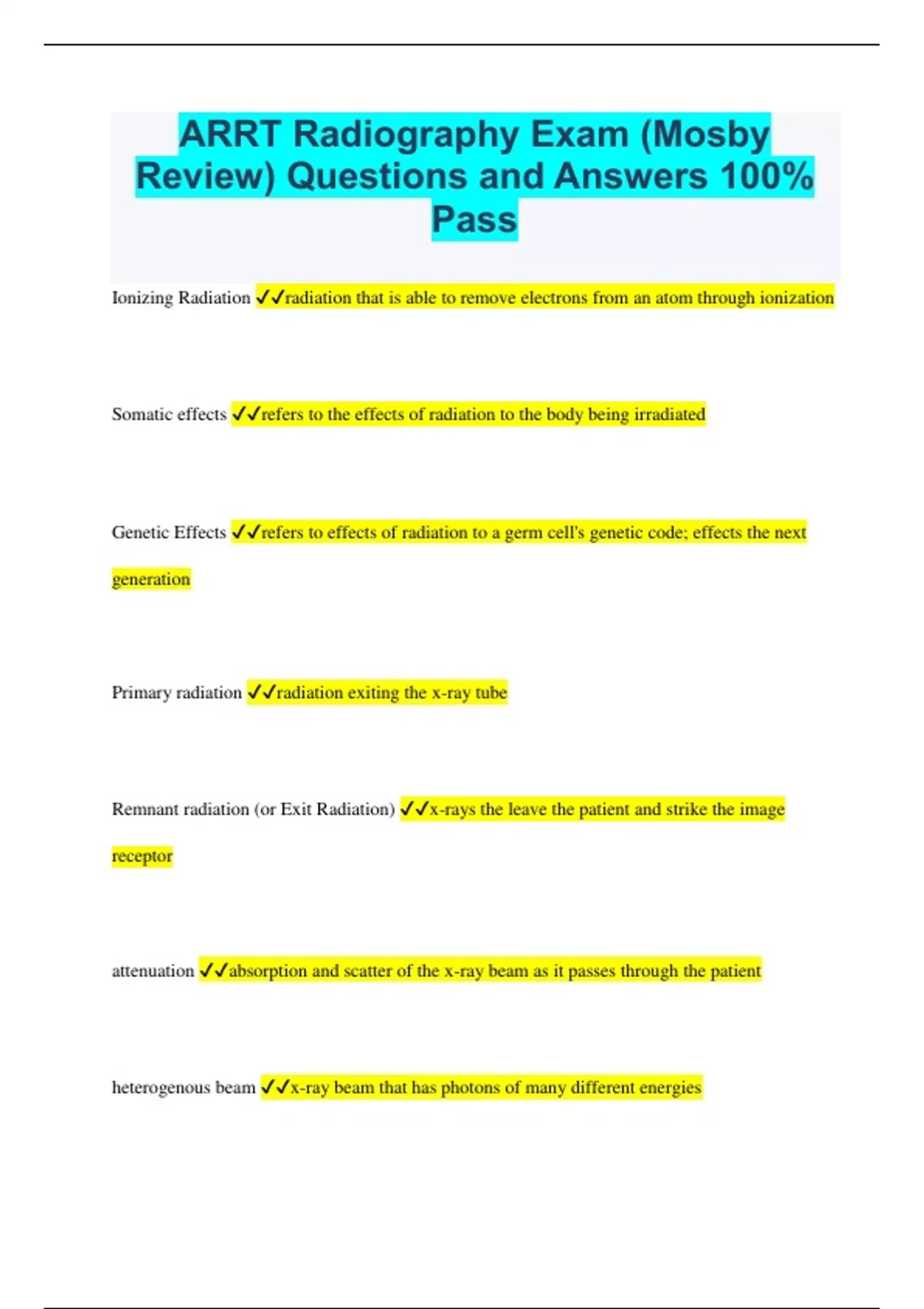 ARRT Radiography Exam (Mosby Review) Questions and Answers 100% Pass