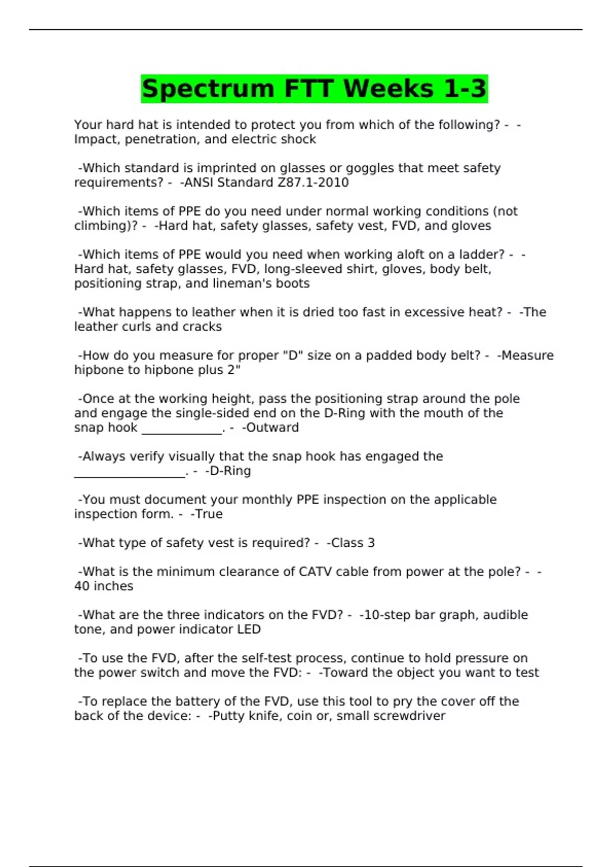 climbing)? - -Hard hat, safety glasses, safety vest, FVD, and gloves