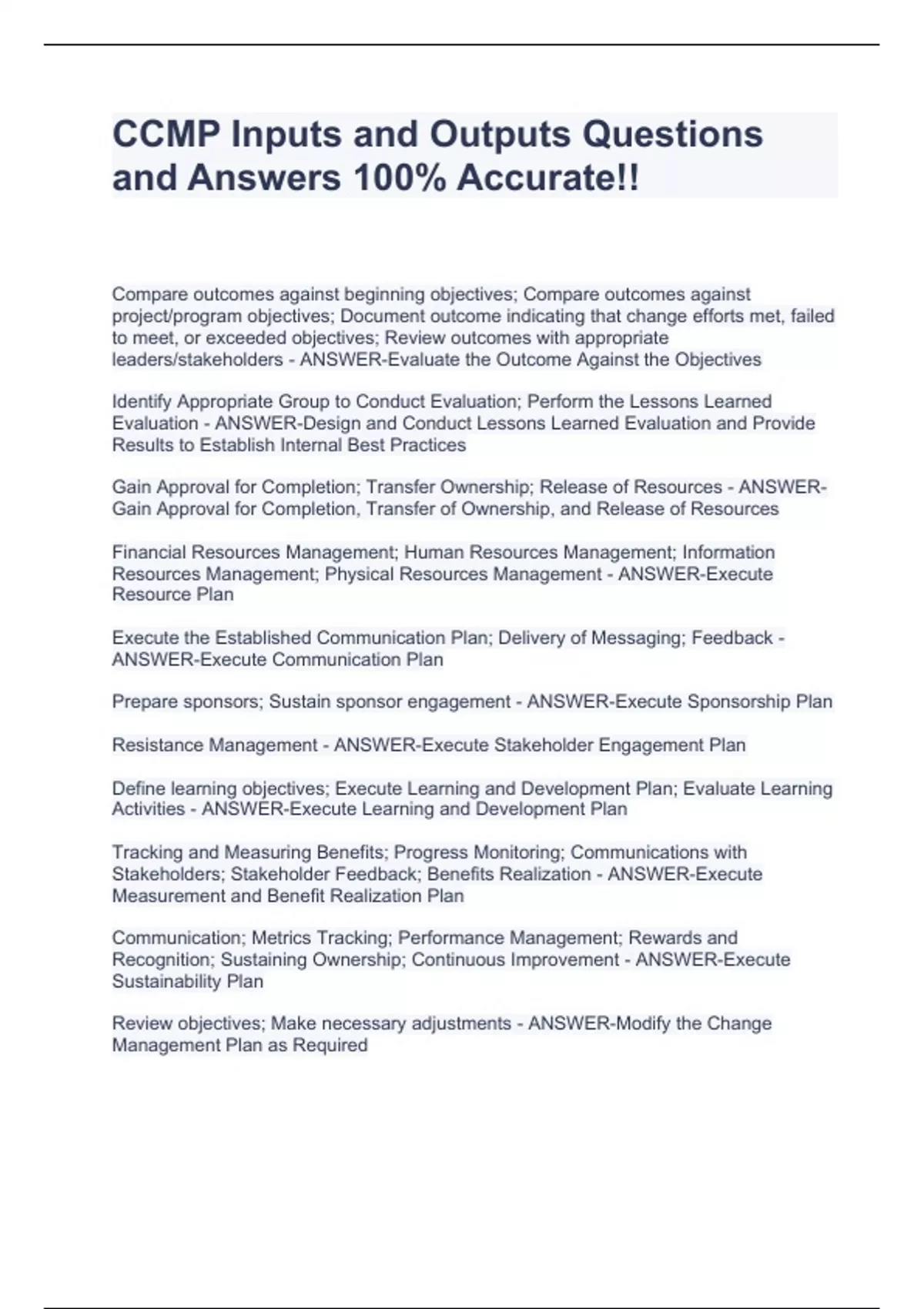 CCMP Inputs and Outputs Questions and Answers 100% Accurate!!