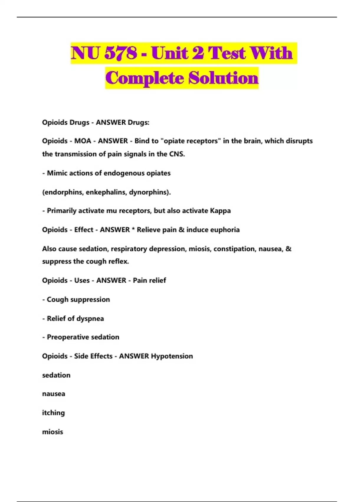 nu 578 unit 2 test with complete solution