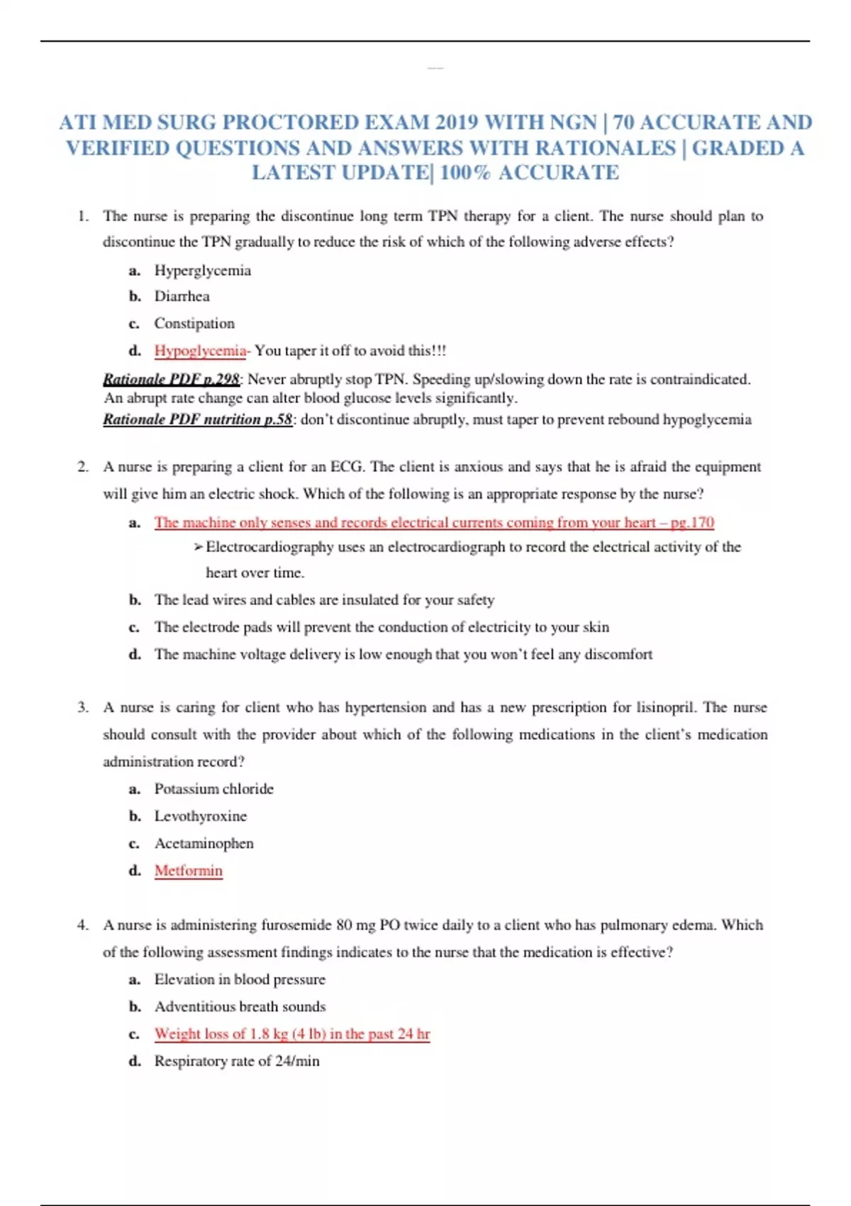 ATI MED SURG PROCTORED EXAM 2019 WITH NGN | 70 ACCURATE AND VERIFIED QUESTIONS AND ANSWERS WITH RATIONALES | GRADED A LATEST UPDATE| 100% ACCURATE ATI MED SURG PROCTORED EXAM 2019 WITH NGN | 70 ACCURATE AND VERIFIED QUESTIONS AND ANSWERS WITH RATIONALES | GRADED A LATEST UPDATE| 100% ACCURATE