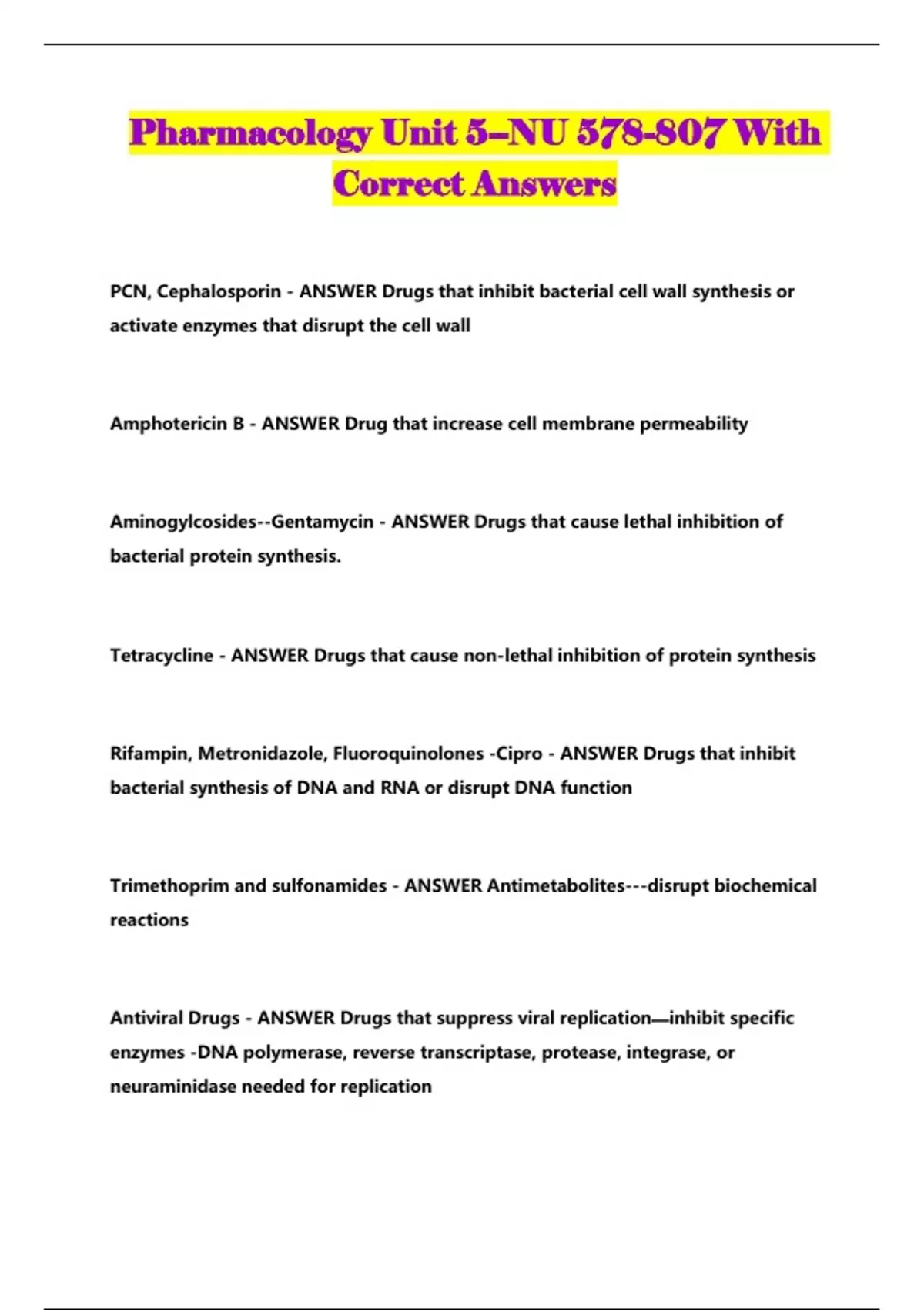 Pharmacology Unit 5--NU 578-807 With Correct Answers
