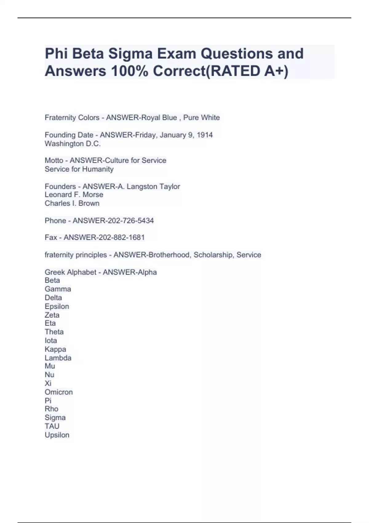 phi beta sigma exam stuvia 2023