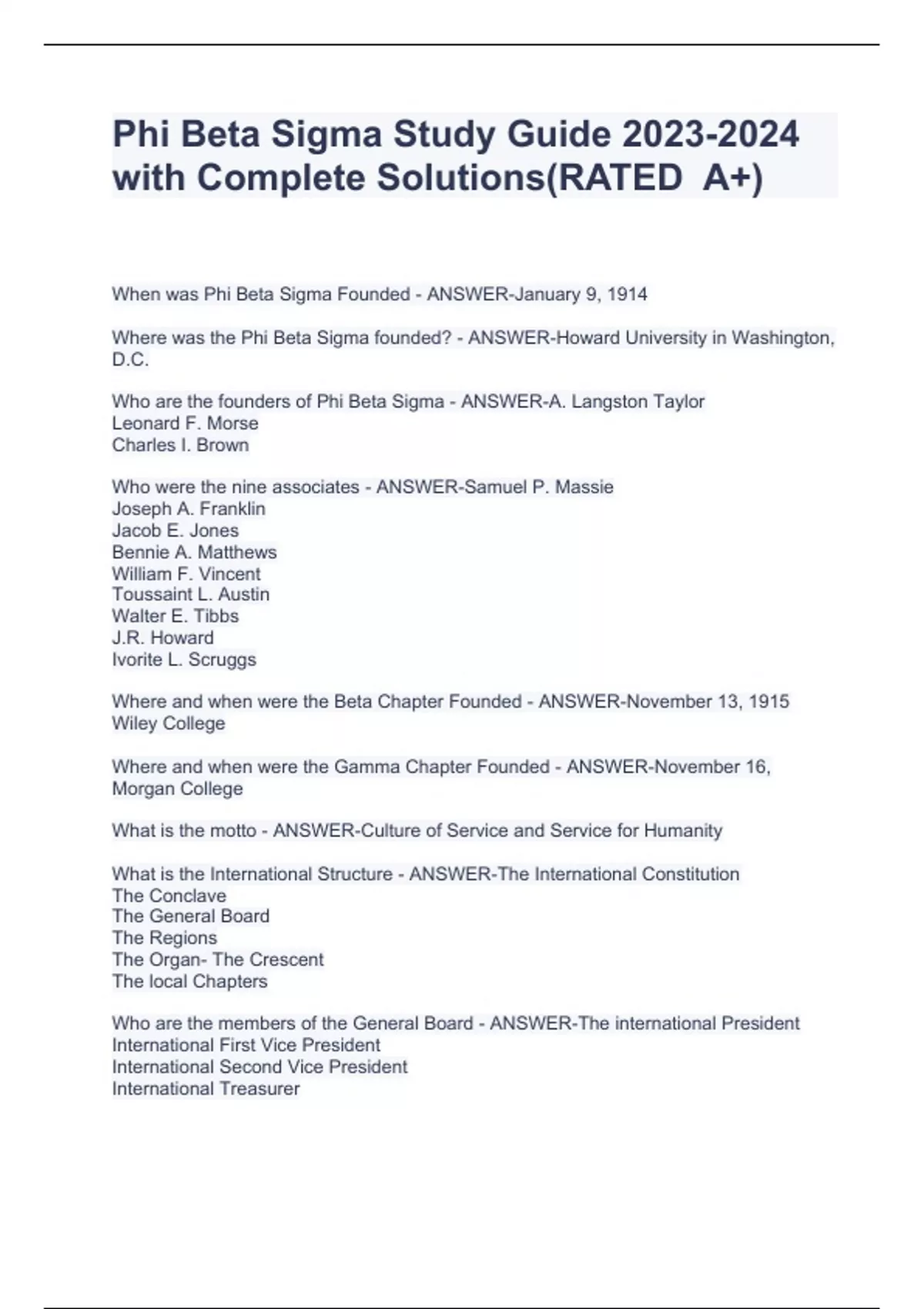 Phi Beta Sigma Study Guide with Complete Solutions(RATED A+)