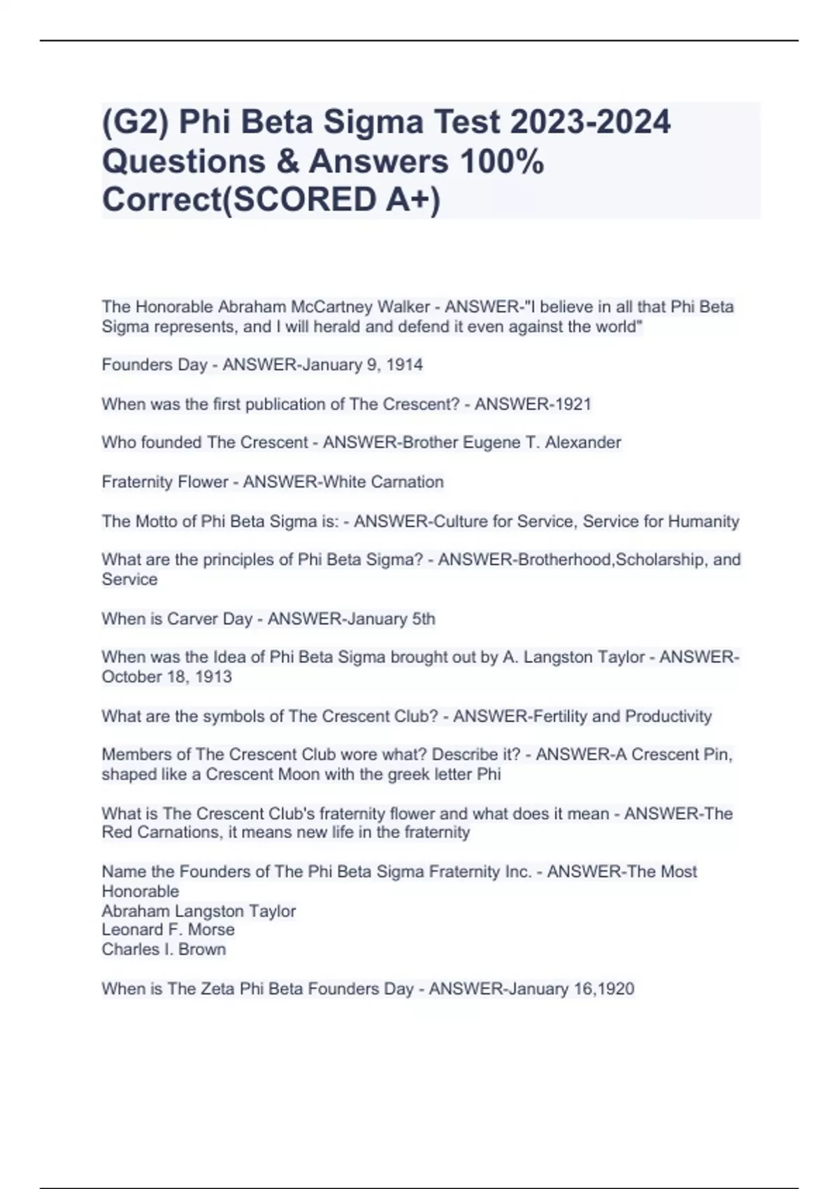 (G2) Phi Beta Sigma Test Questions & Answers 100% Correct(SCORED A+)