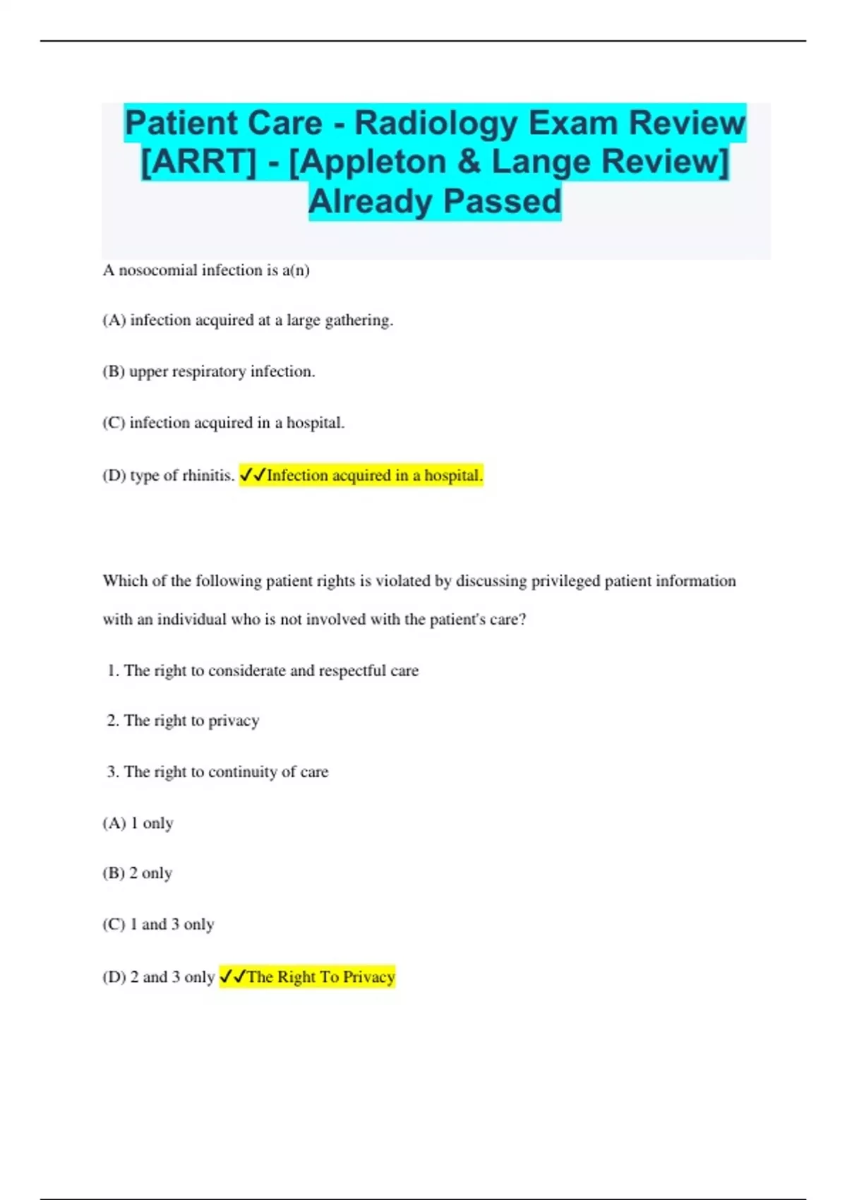 Patient Care - Radiology Exam Review [ARRT] - [Appleton & Lange Review] Already Passed