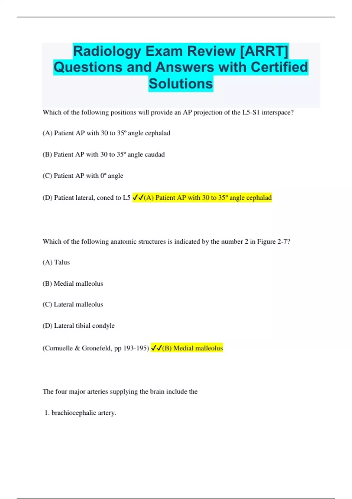 Radiology Exam Review [ARRT] Questions and Answers with Certified Solutions