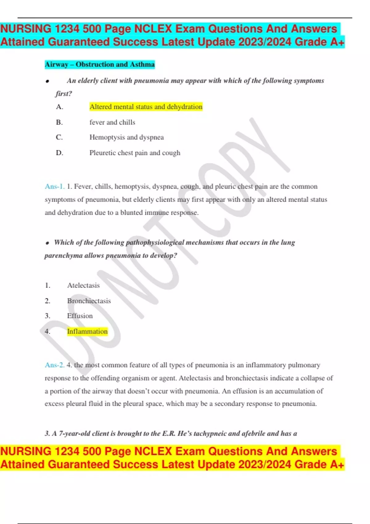 nursing 1234 500 page nclex exam questions and ans