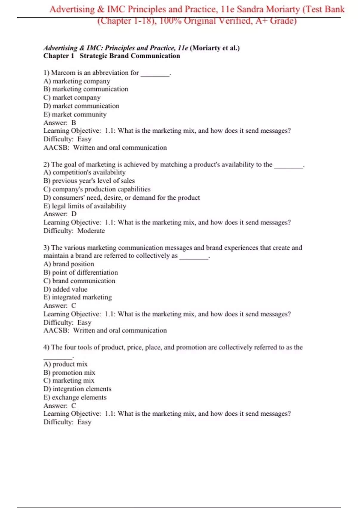 Test Bank For Advertising & IMC Principles and Practice 11th Edition By Sandra Moriarty, Nancy Mitchell, Charles Wood, William Wells (All Chapters, 100% Original Verified, A+ Grade) Test Bank For Advertising & IMC Principles and Practice 11e By Sandra Moriarty, Nancy Mitchell, Charles Wood, William Wells (All Chapters, 100% Original Verified, A+ Grade)