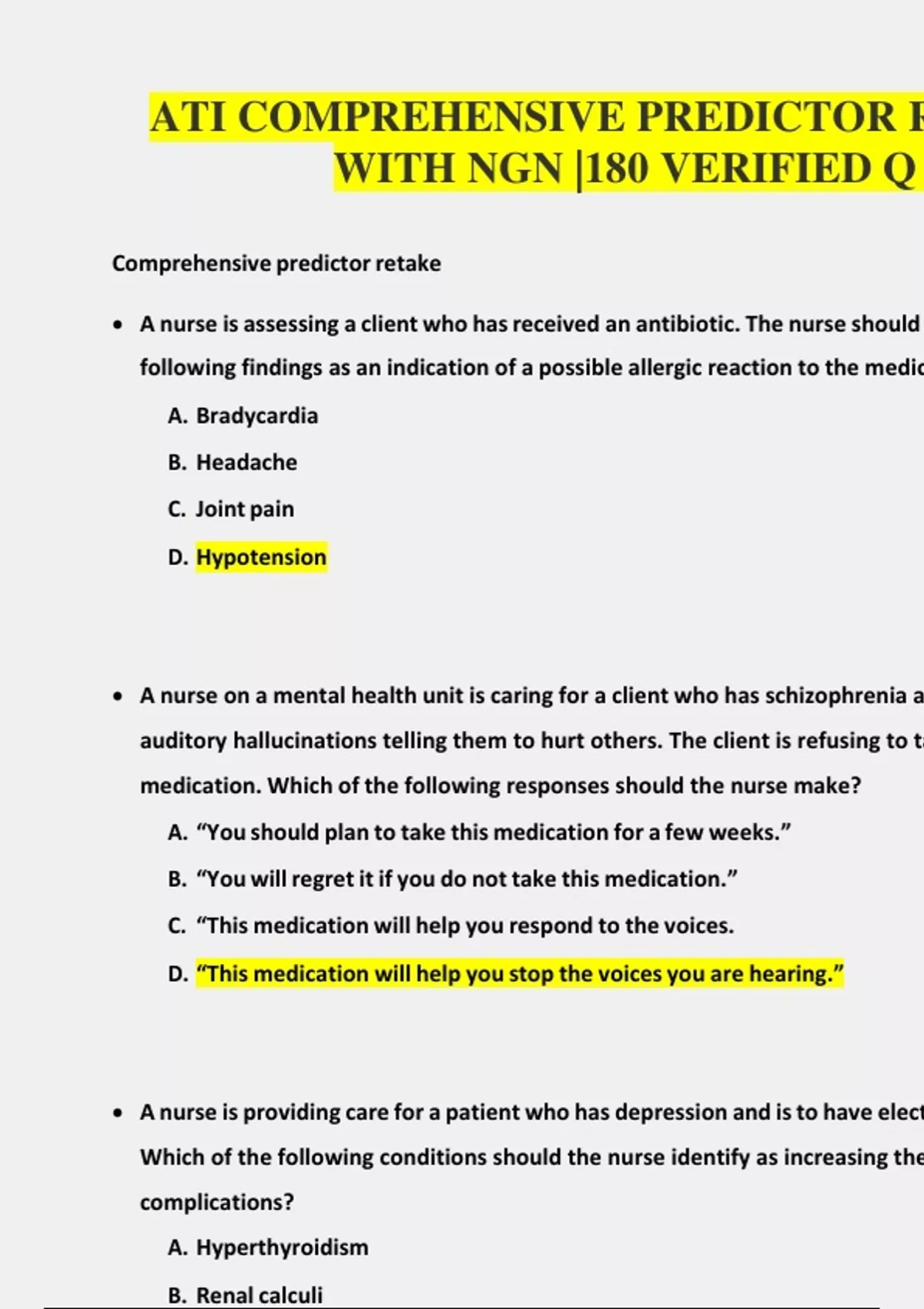 ATI COMPREHENSIVE PREDICTOR RETAKE 2019 WITH NGN |180 VERIFIED Q & A