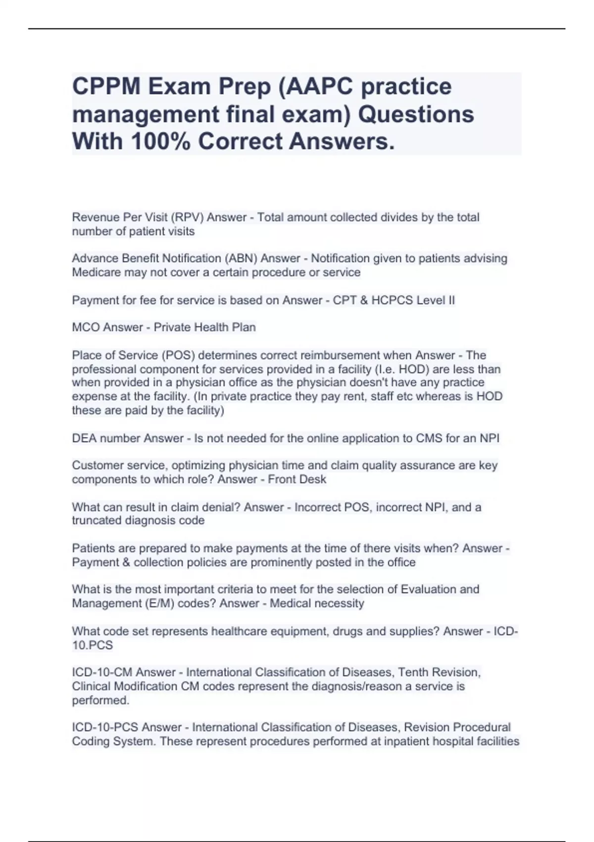 CPPM Exam Prep (AAPC practice management final exam) Questions With 100% Correct Answers.