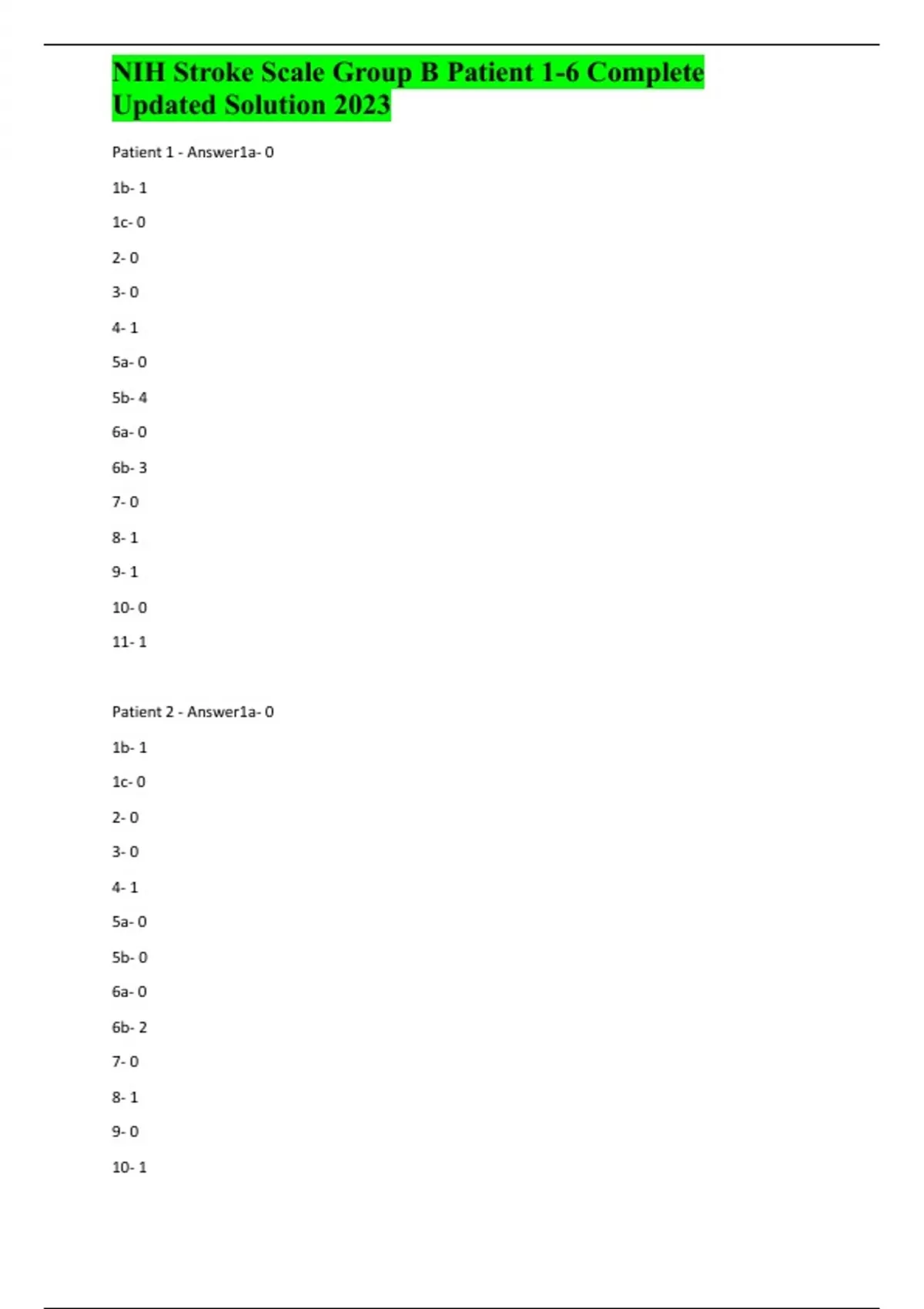 NIH Stroke Scale Group B Patient 1-6 Complete Updated Solution 2023