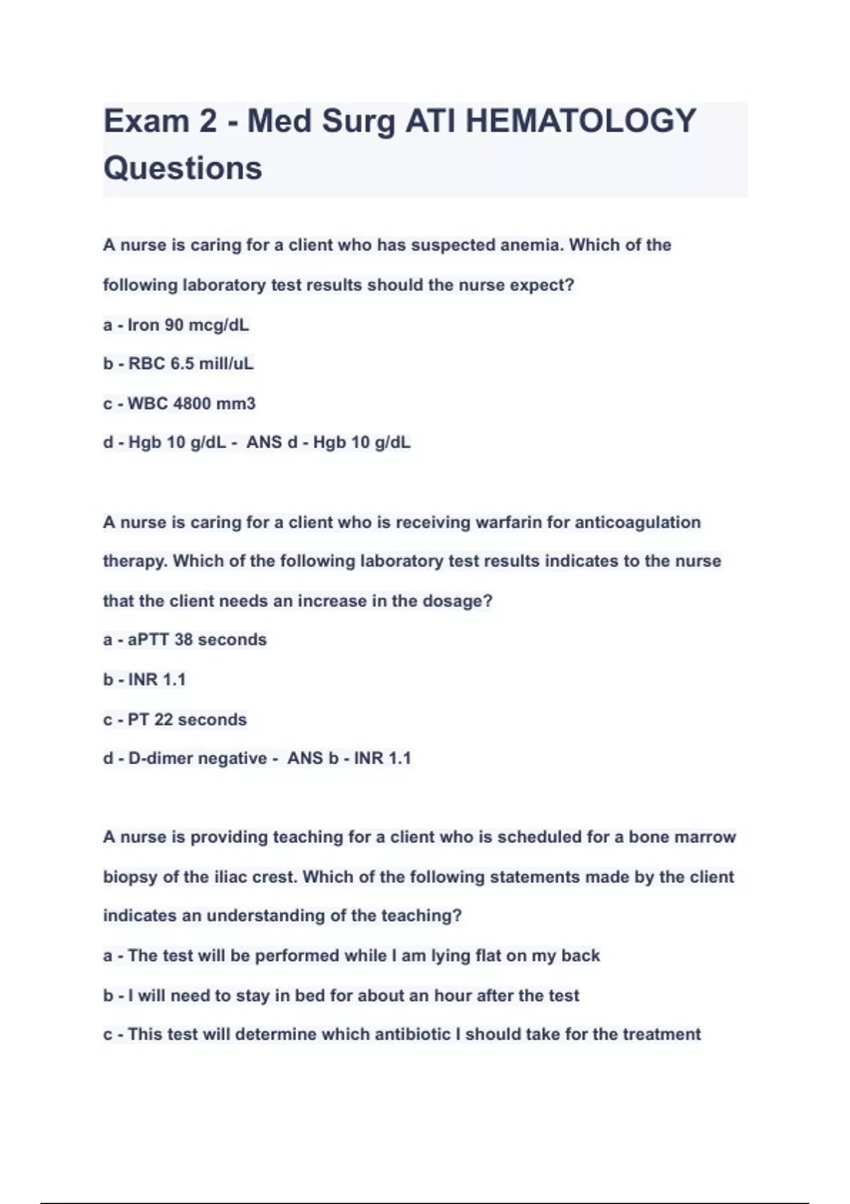 - Med Surg ATI HEMATOLOGY