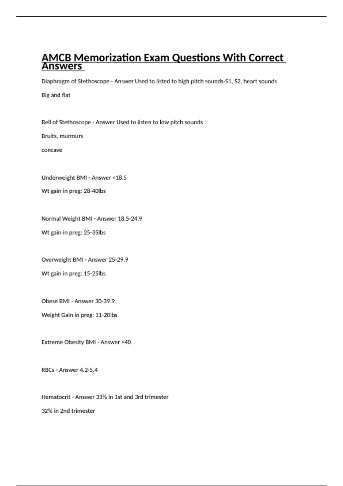 AMCB Memorization Exam Questions With Correct Answers