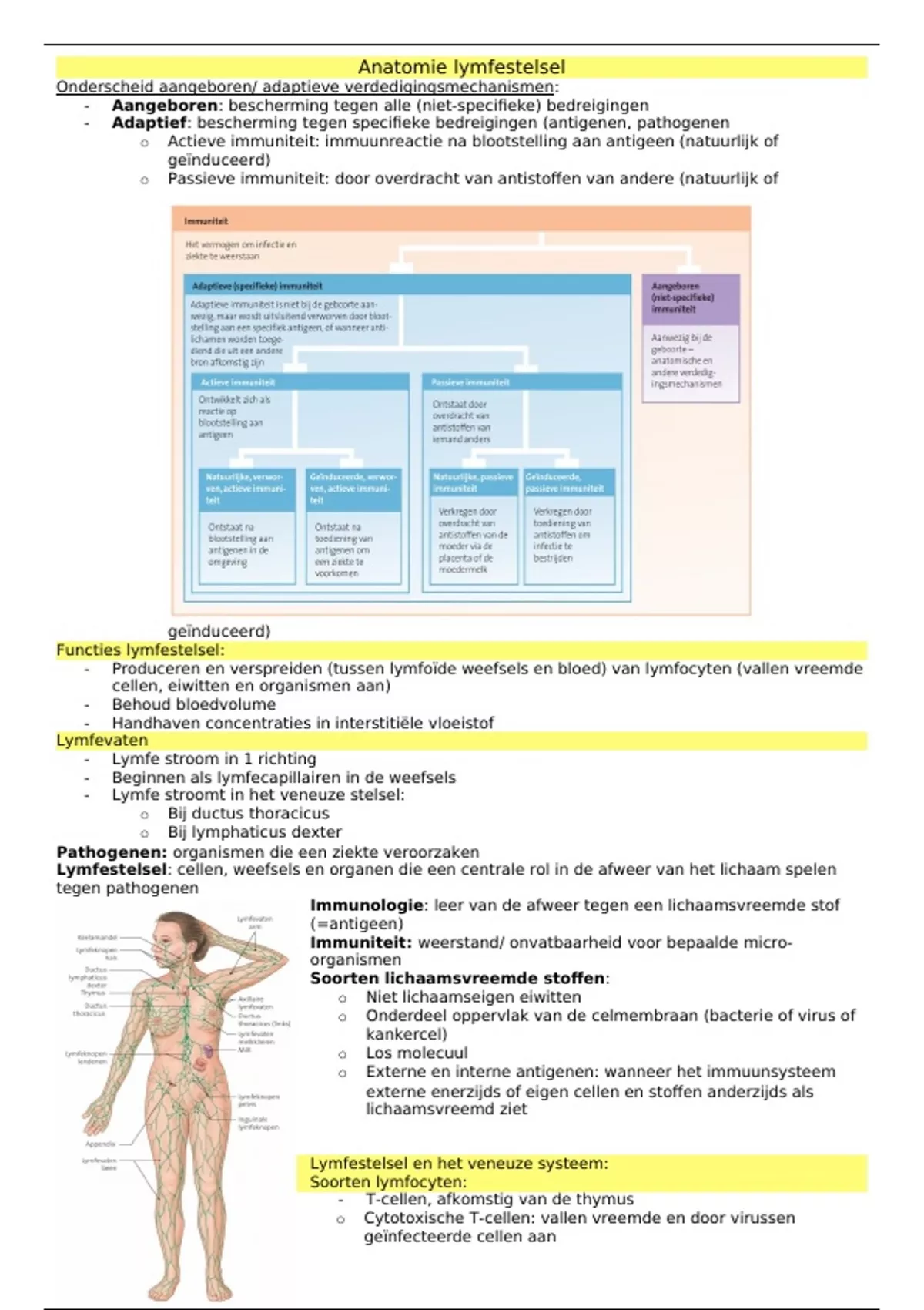 Samenvatting Anatomie en Fysiologie: Lymfevatenstelsel