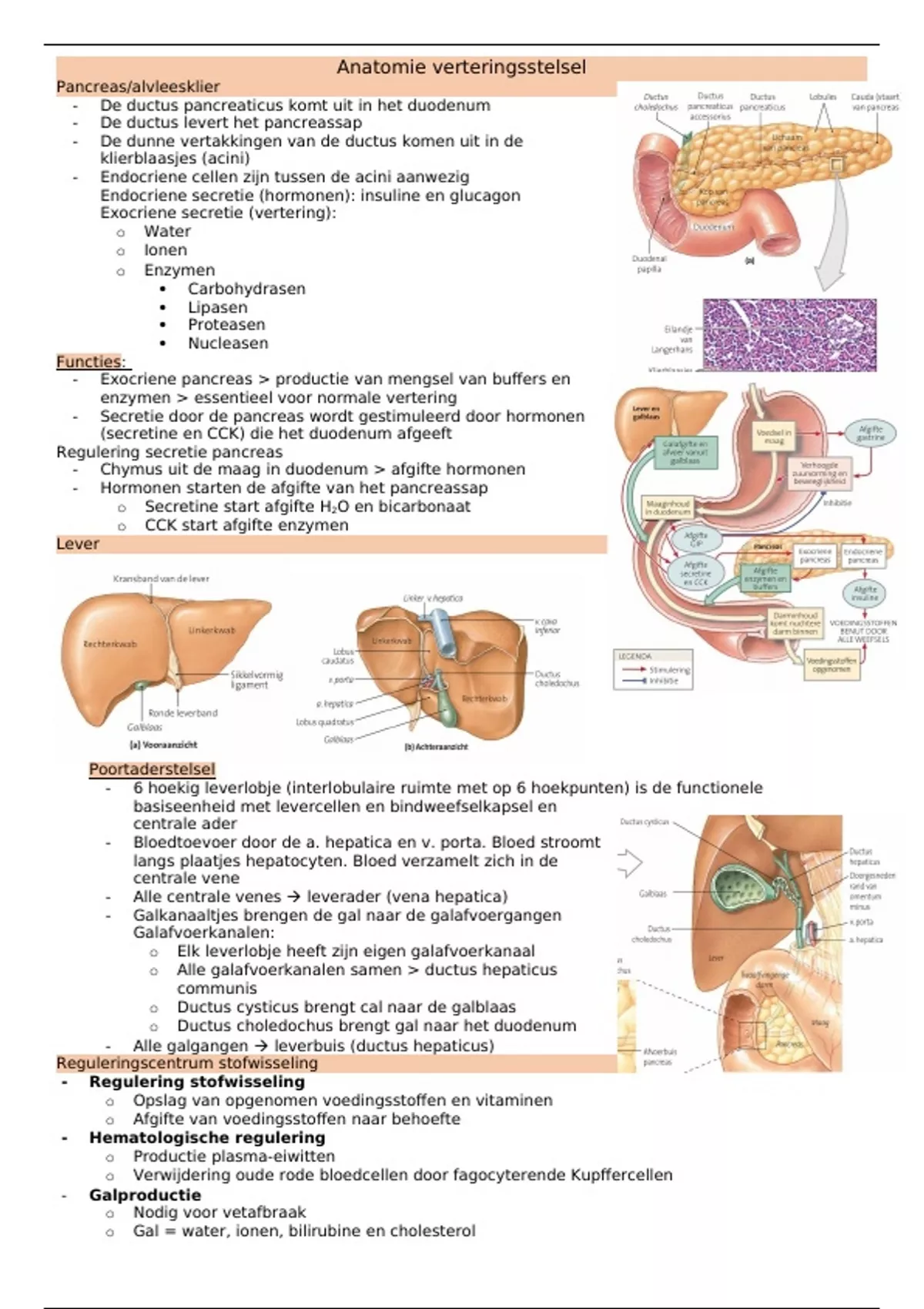 o Ductus choledochus brengt gal naar het duodenum