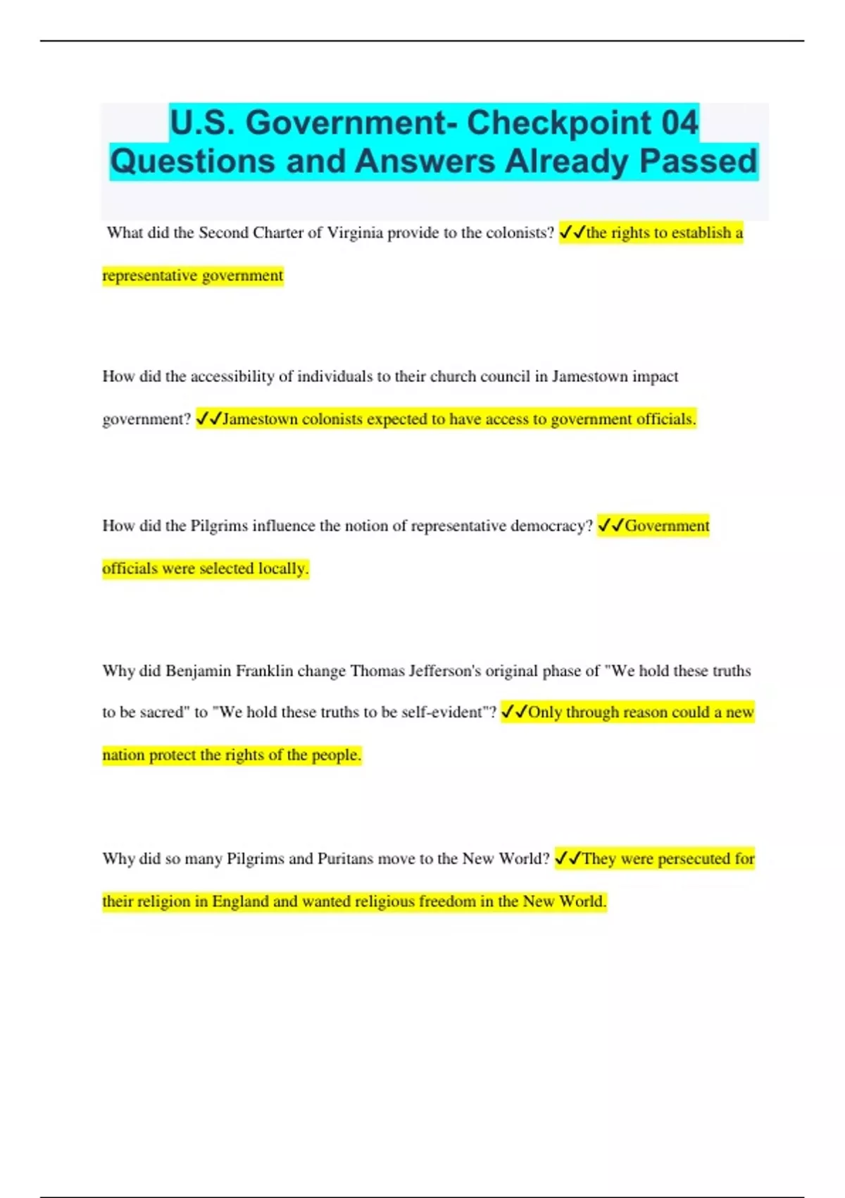 U.S. Government- Checkpoint 04 Questions and Answers Already Passed