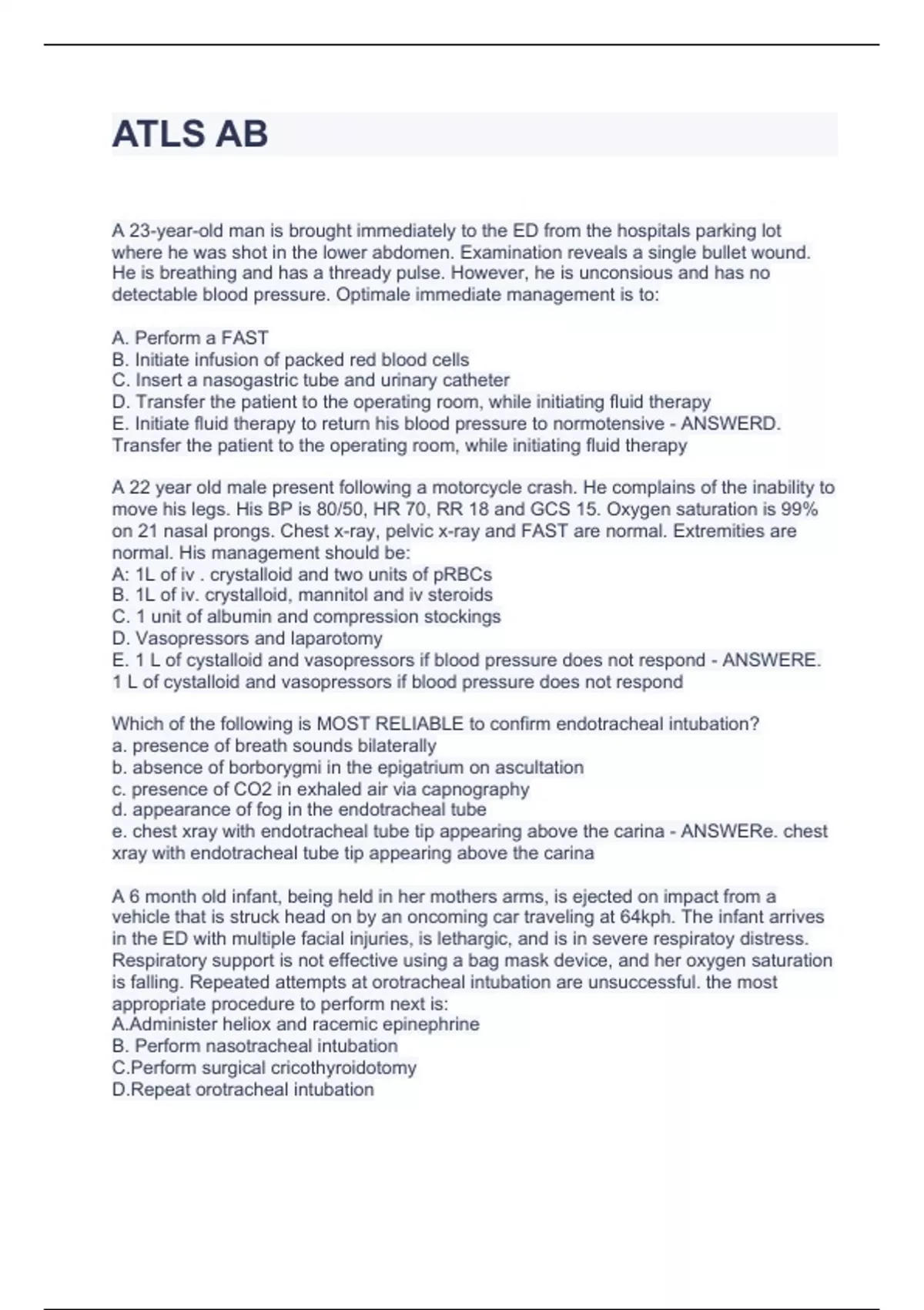 Exam of 9 pages for the course Physician, taking ATLS at Physician, taking ATLS (ATLS AB)