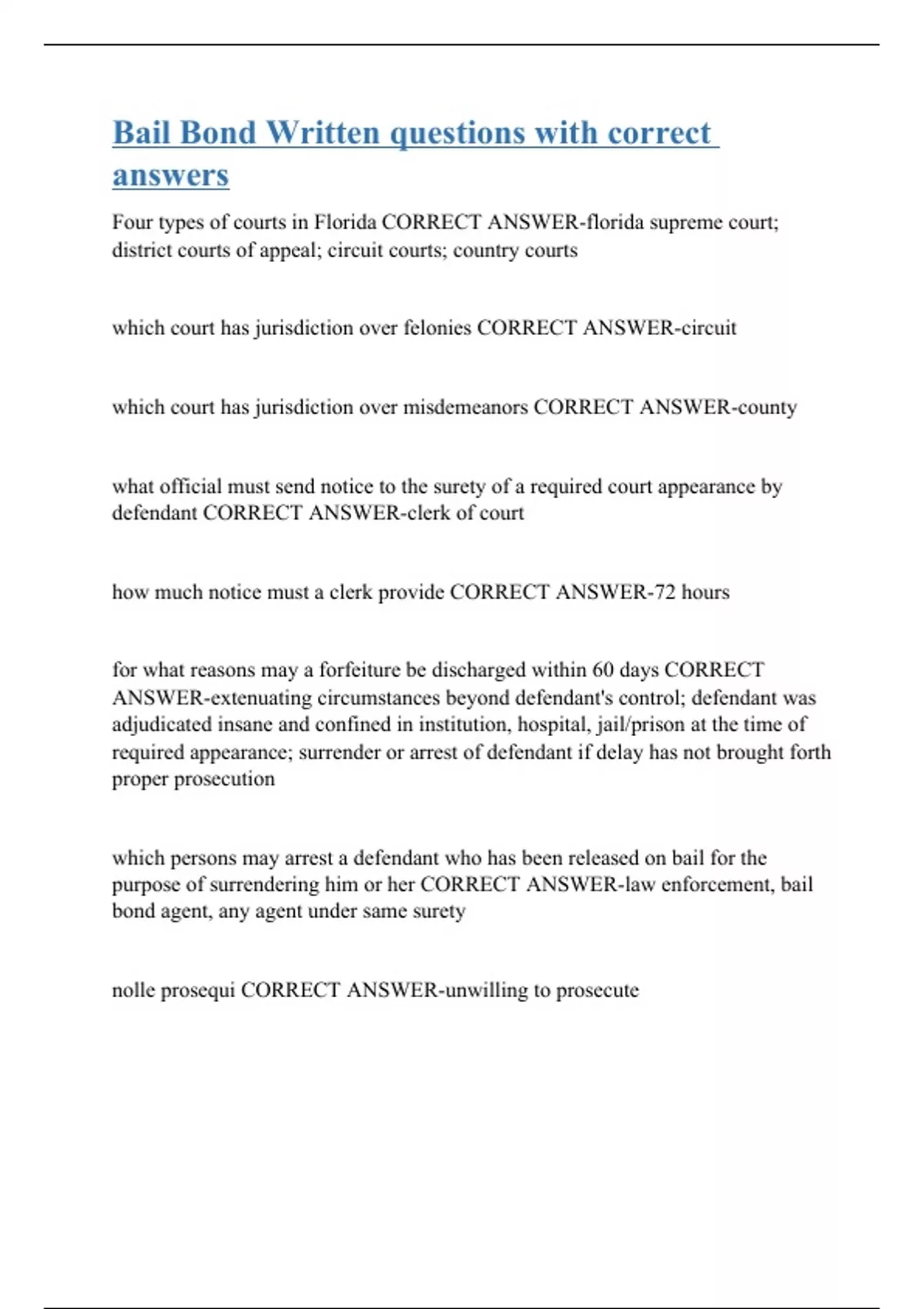 Bail Bond Written questions with correct answers