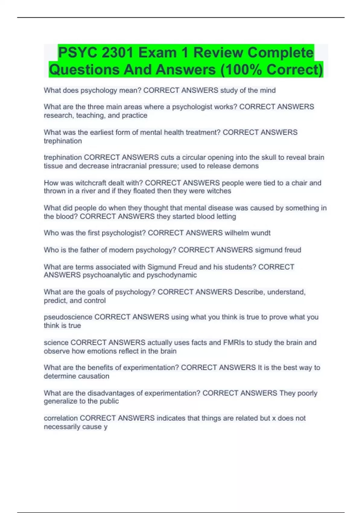 psyc 2301 exam 1 review complete questions and ans