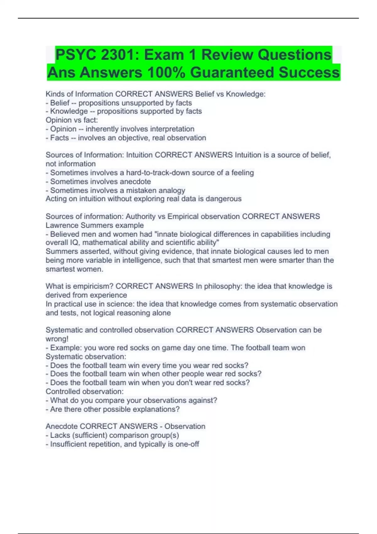 PSYC 2301: Exam 1 Review Questions Ans Answers 100% Guaranteed Success