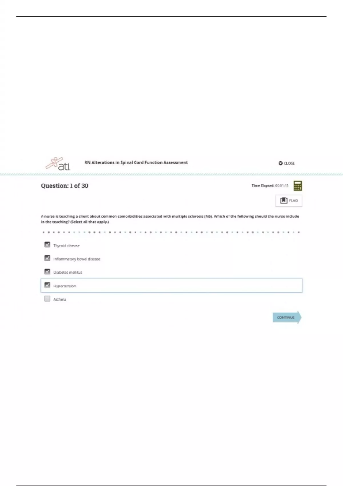 ATI ENGAGE ADULT MEDICAL SURGICAL RN: RN ALTERATIONS IN SPINAL CORD FUNCTION ASSESSMENT