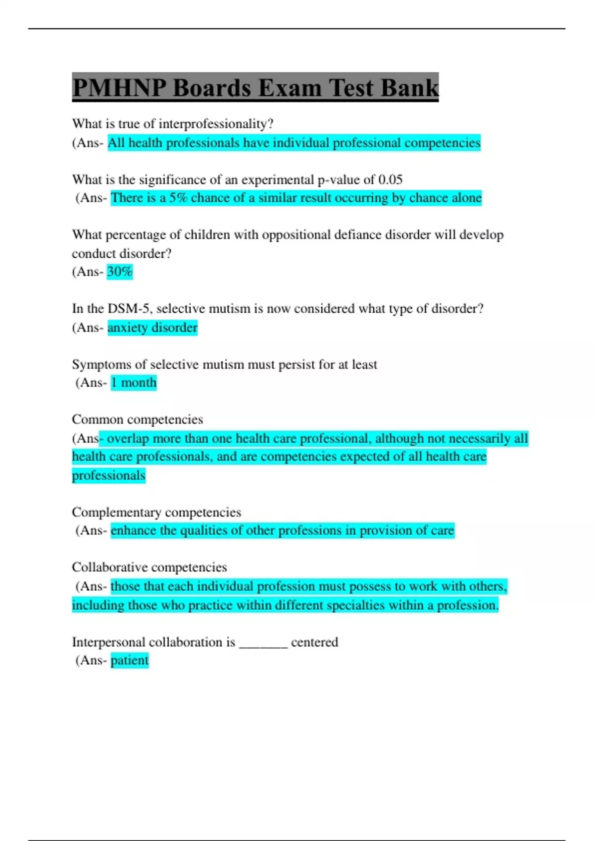 PMHNP Boards Exam Test Bank