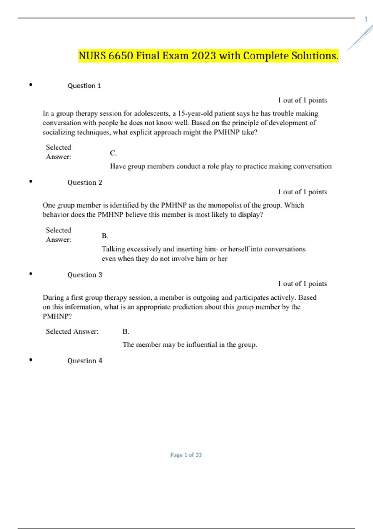 NURS 6650 Final Exam 2023 with Complete Solutions..NURS 6650 Final Exam 2023 with Complete Solutions..