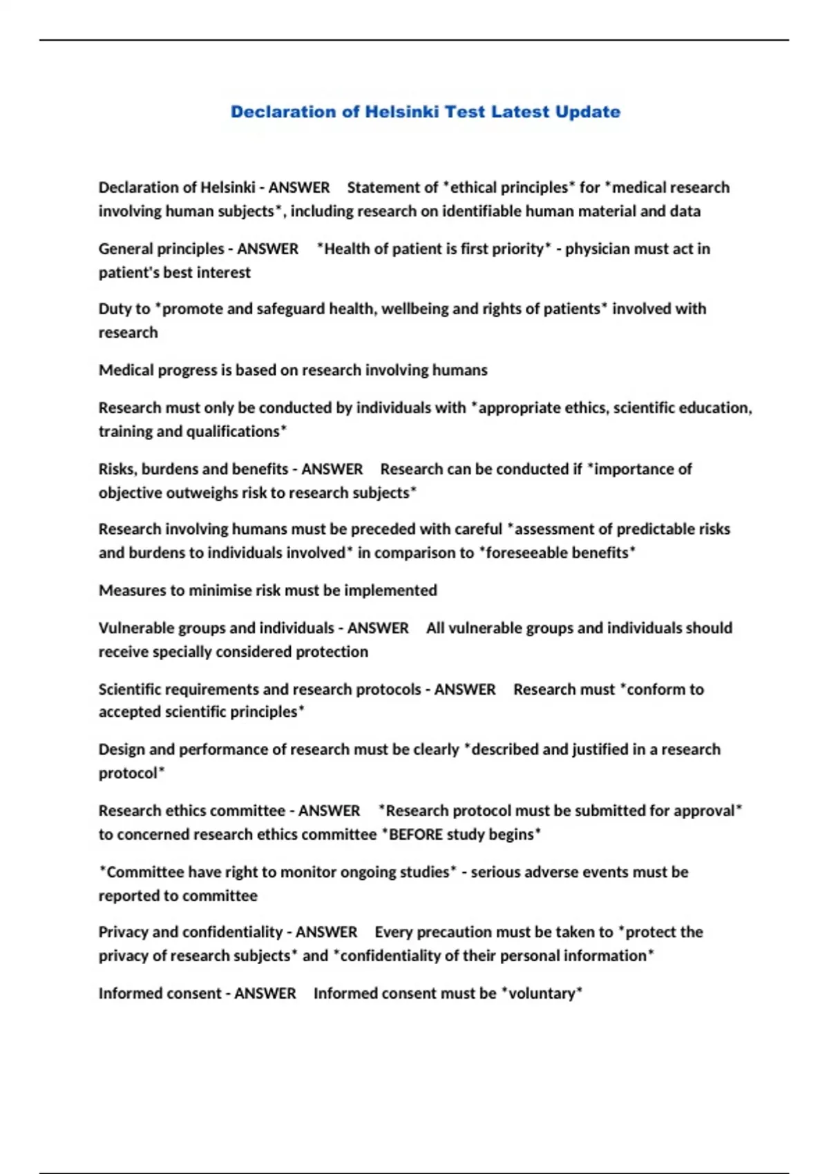 Declaration of Helsinki Test Latest Update...