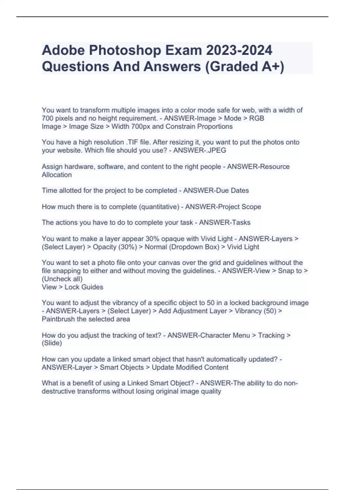 Adobe Photoshop Exam Questions And Answers (Graded A+)