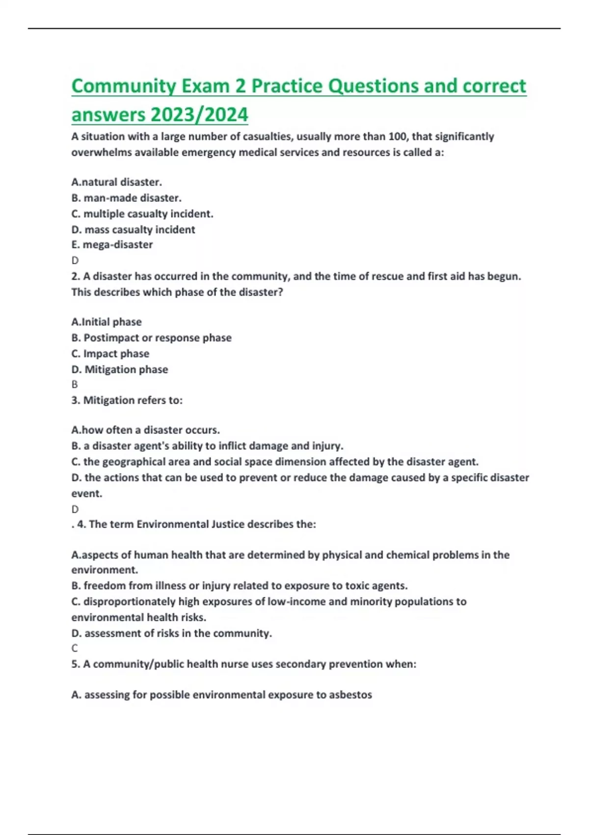 Community Exam 2 Practice Questions and correct answers 2023/2024