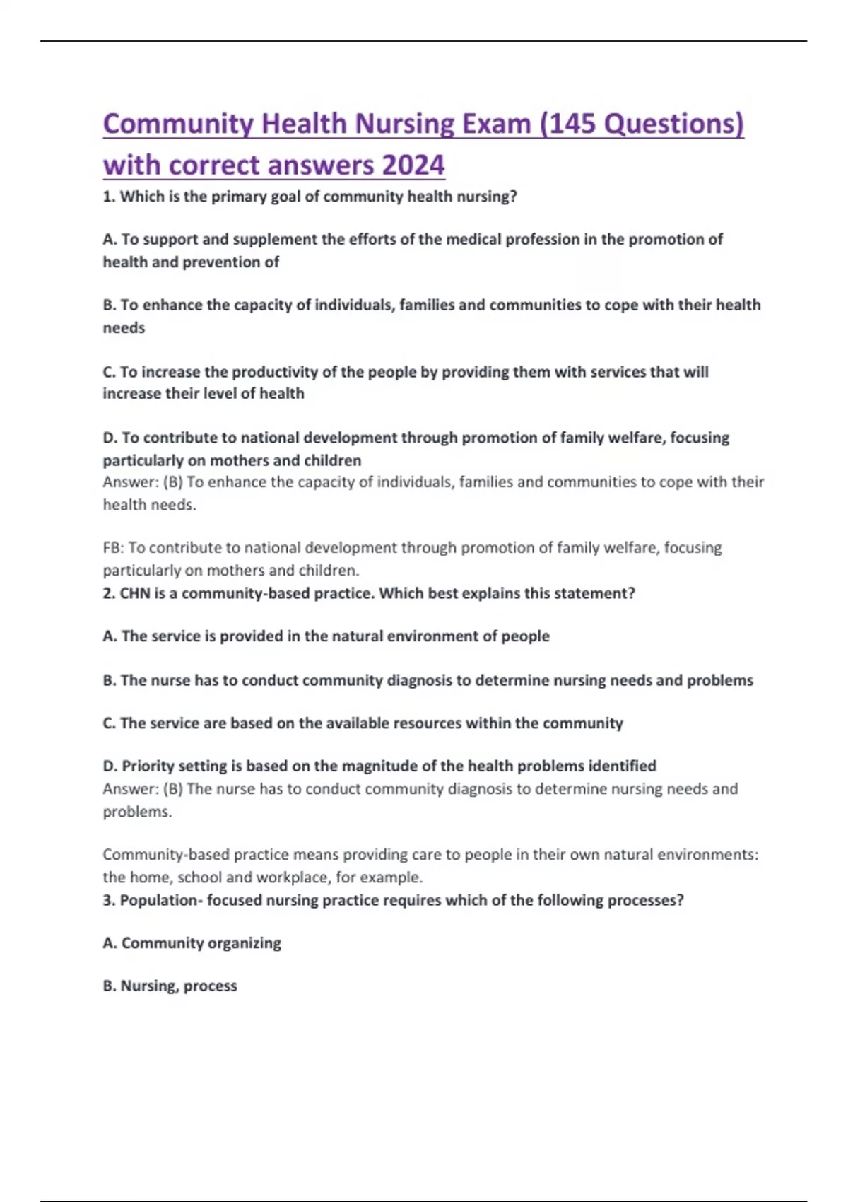 Community Health Nursing Exam (145 Questions) with correct answers 2024 Community Health Nursing Exam (145 Questions) with correct answers 2024 Community Health Nursing Exam (145 Questions) with correct answers 2024 Community Health Nursing Exam (145 Questions) with correct answers 2024 Community Health Nursing Exam (145 Questions) with correct answers 2024 Community Health Nursing Exam (145 Questions) with correct answers 2024 Community Health Nursing Exam (145 Questions) with correct answers 2024 Community Health Nursing Exam (145 Questions) with correct answers 2024 Community Health Nursing Exam (145 Questions) with correct answers 2024 Community Health Nursing Exam (145 Questions) with correct answers 2024 Community Health Nursing Exam (145 Questions) with correct answers 2024 Community Health Nursing Exam (145 Questions) with correct answers 2024 Community Health Nursing Exam (145 Questions) with correct answers 2024