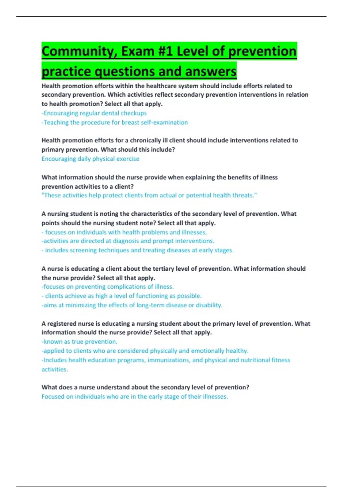 Community, Exam #1 Level of prevention practice questions and answers Community, Exam #1 Level of prevention practice questions and answers Community, Exam #1 Level of prevention practice questions and answers Community, Exam #1 Level of prevention practice questions and answers Community, Exam #1 Level of prevention practice questions and answers Community, Exam #1 Level of prevention practice questions and answers Community, Exam #1 Level of prevention practice questions and answers Community, Exam #1 Level of prevention practice questions and answers Community, Exam #1 Level of prevention practice questions and answers Community, Exam #1 Level of prevention practice questions and answers Community, Exam #1 Level of prevention practice questions and answers Community, Exam #1 Level of prevention practice questions and answers Community, Exam #1 Level of prevention practice questions and answers Community, Exam #1 Level of prevention practice questions and answers Community, Exam #1 Level of prevention practice questions and answers Community, Exam #1 Level of prevention practice questions and answers Community, Exam #1 Level of prevention practice questions and answers Community, Exam #1 Level of prevention practice questions and answers Community, Exam #1 Level of prevention practice questions and answers Community, Exam #1 Level of prevention practice questions and answers Community, Exam #1 Level of prevention practice questions and answers Community, Exam #1 Level of prevention practice questions and answers