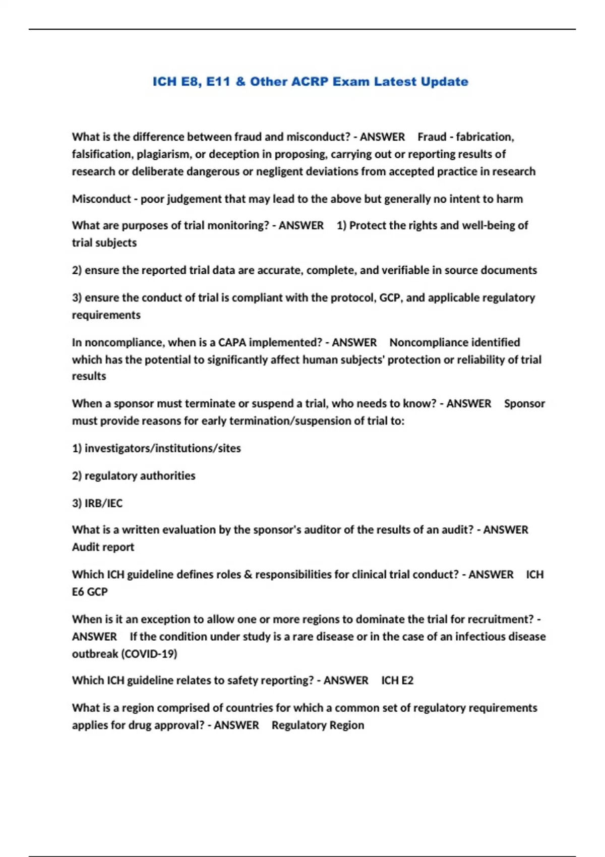 ICH E8, E11 & Other ACRP Exam Latest Update...