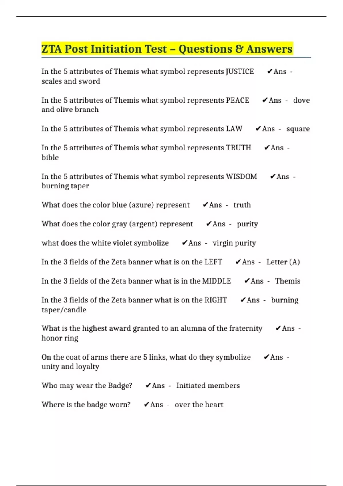 ZTA Post Initiation Test – Questions & Answers