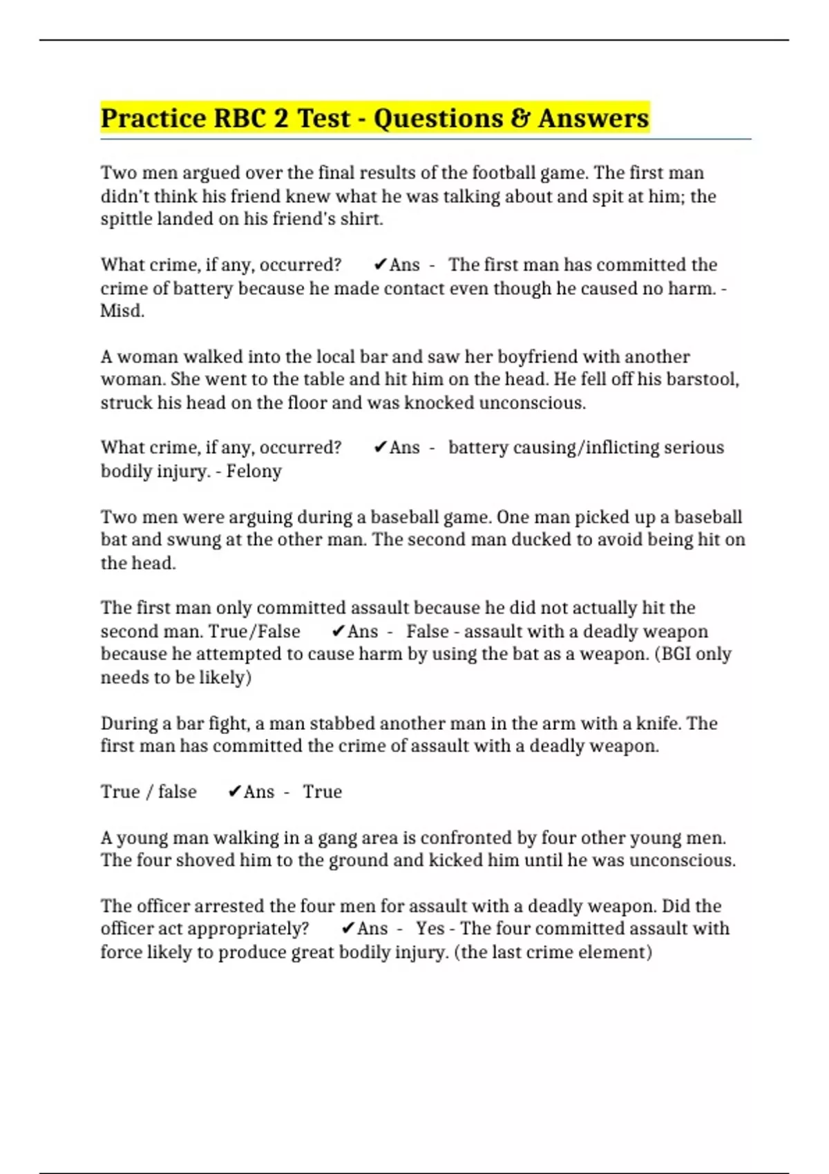 Practice RBC 2 Test - Questions & Answers