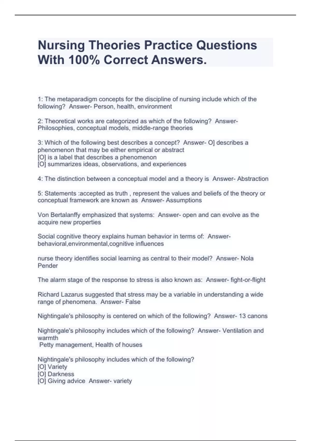 Nursing Theories Practice Questions With 100% Correct Answers..