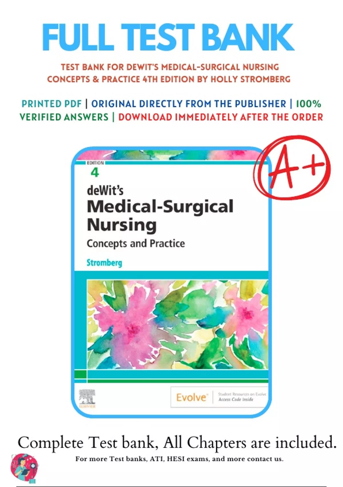Test Bank For deWits Medical Surgical Nursing: Concepts and Practice, 4th edition (Stromberg, 2021), Chapter 1-48 | 9780323608442 | All Chapters with Answers and Rationals