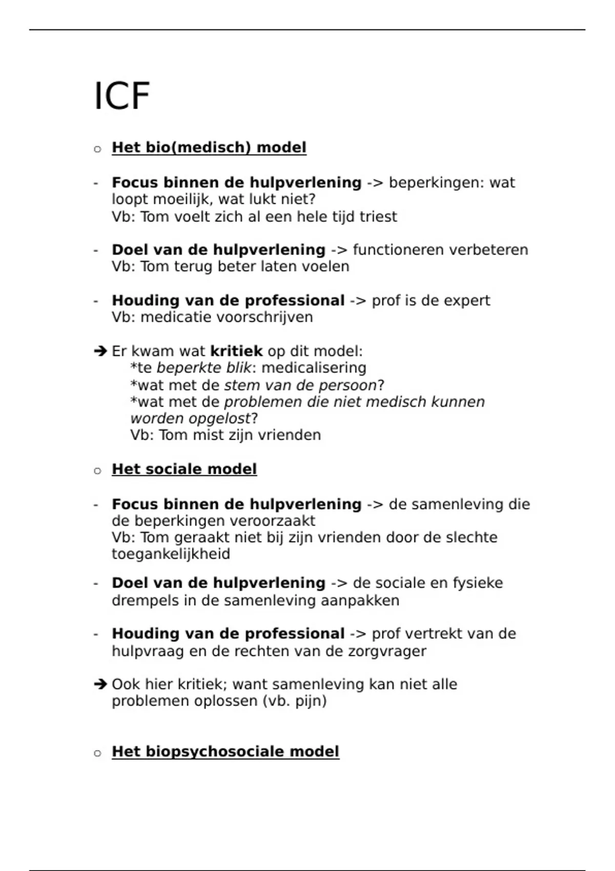 Samenvatting van de powerpoint over ICF. Enkel van de powerpoint, want er is geen boek hierover.