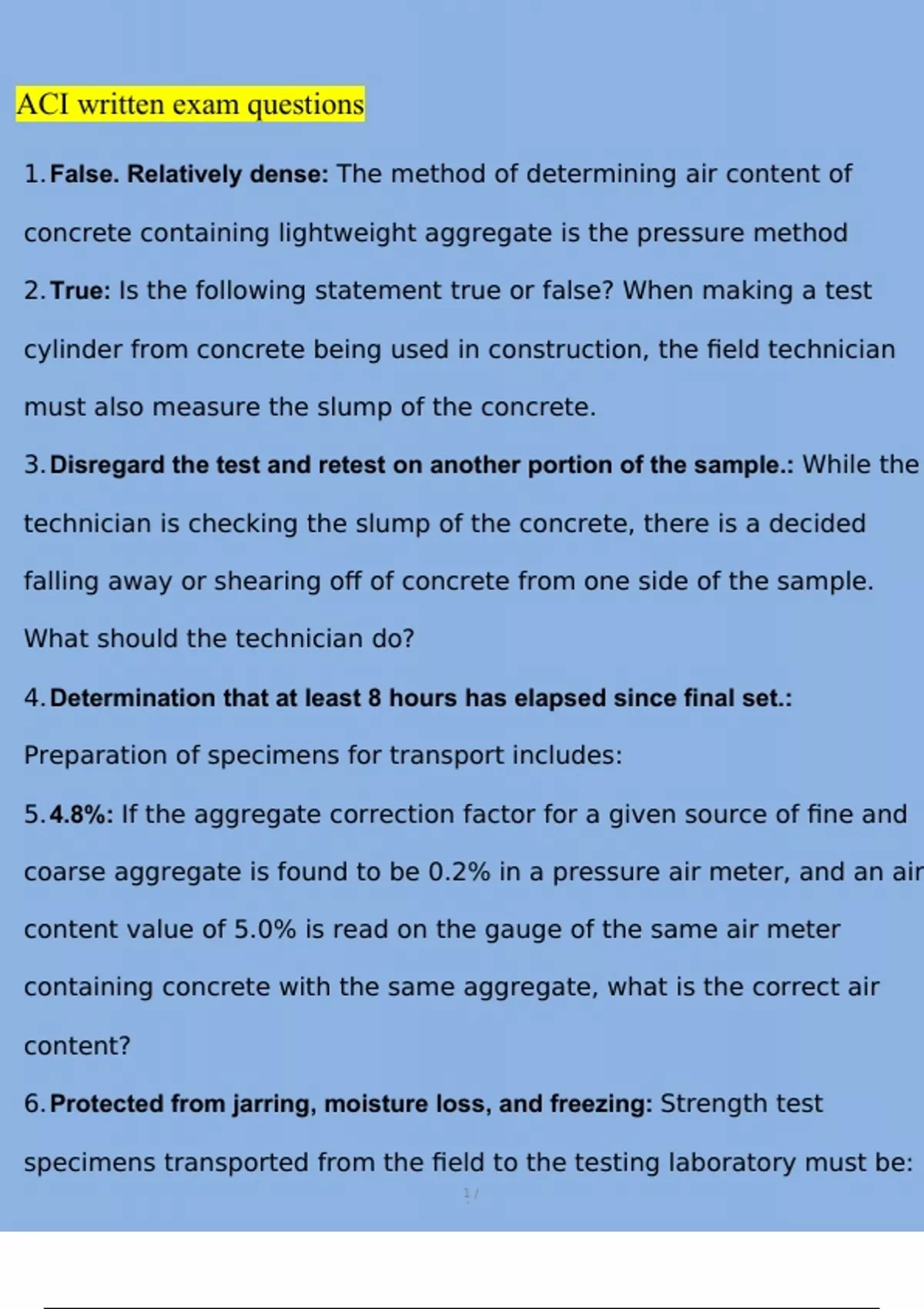 ACI written exam Questions and Answers (2023/2024) (Verified Answers)