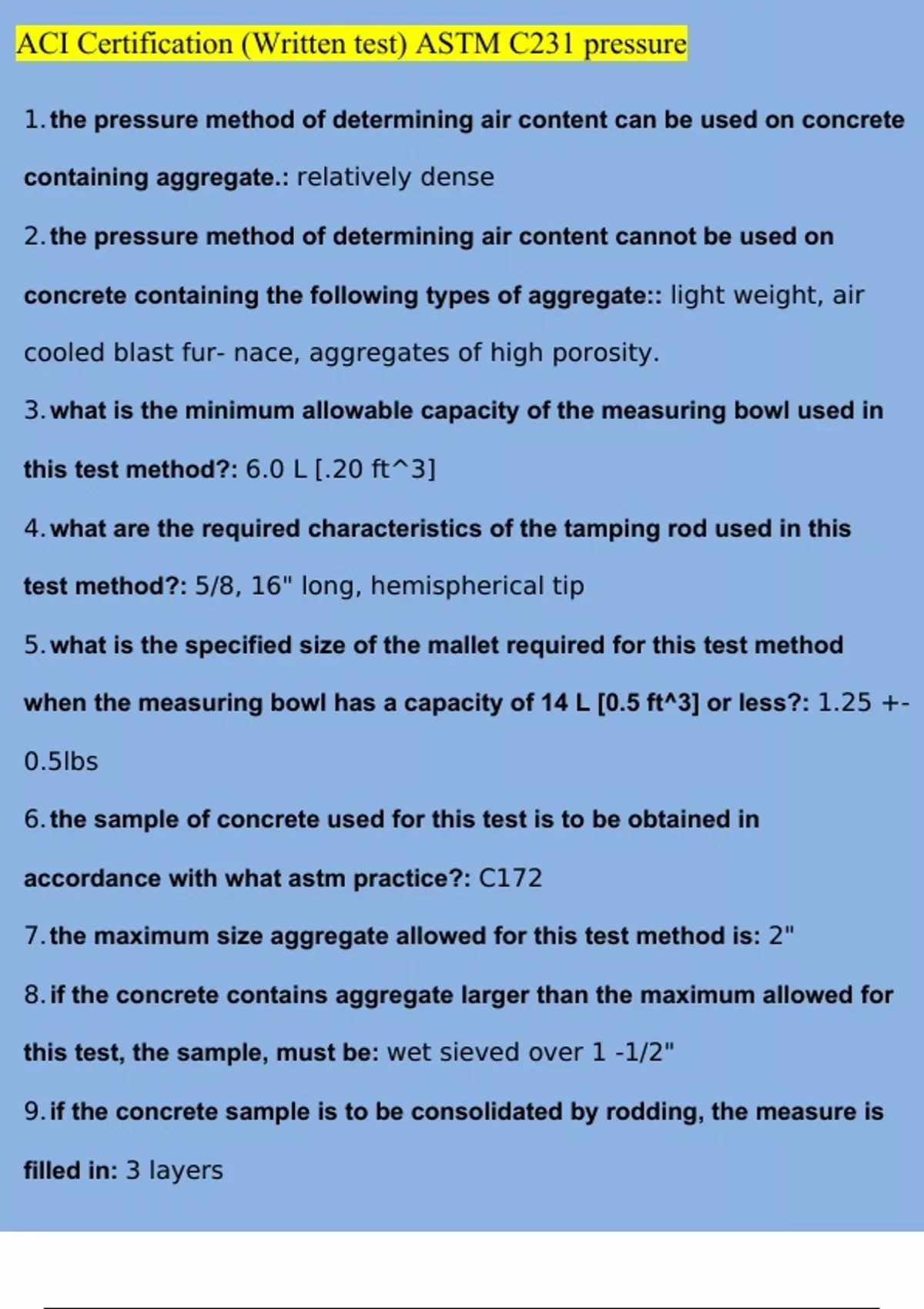 ACI Certification (Written test) ASTM C231 pressure Questions and Answers (2023/2024) (Verified Answers)